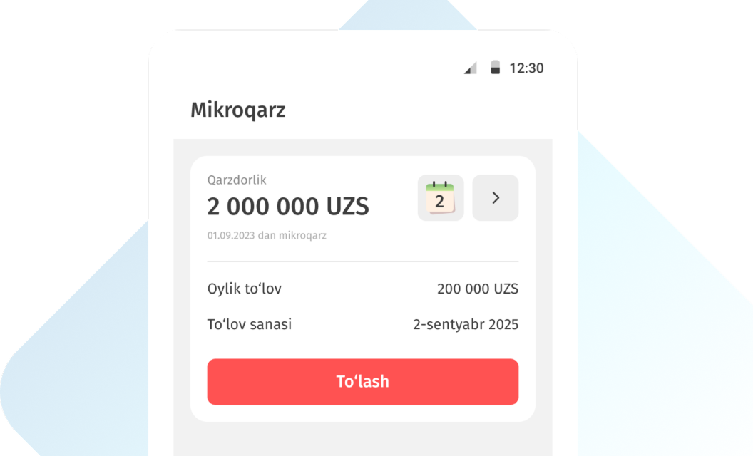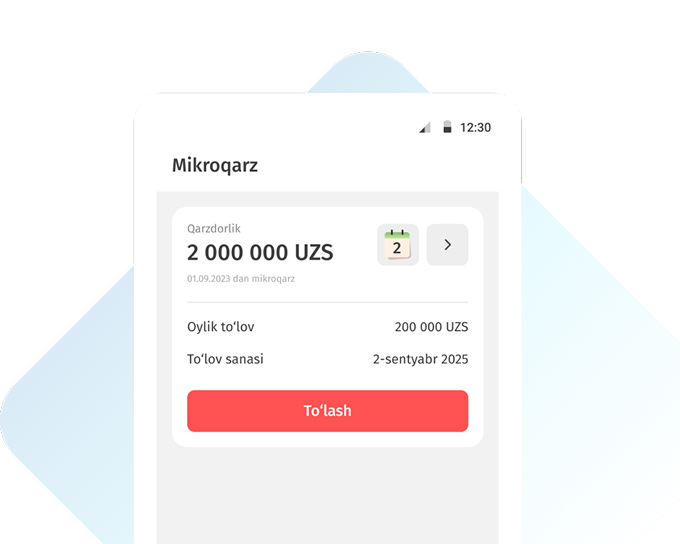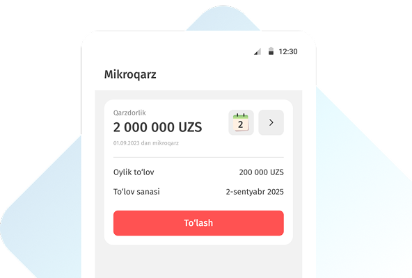 Biz O‘zbekiston fuqarolariga tez va sifatli tarzda mikroqarz beramiz — ishonchli, kafillarsiz. Kartaga mikroqarzni birinchi murojaatda olishingiz mumkin.